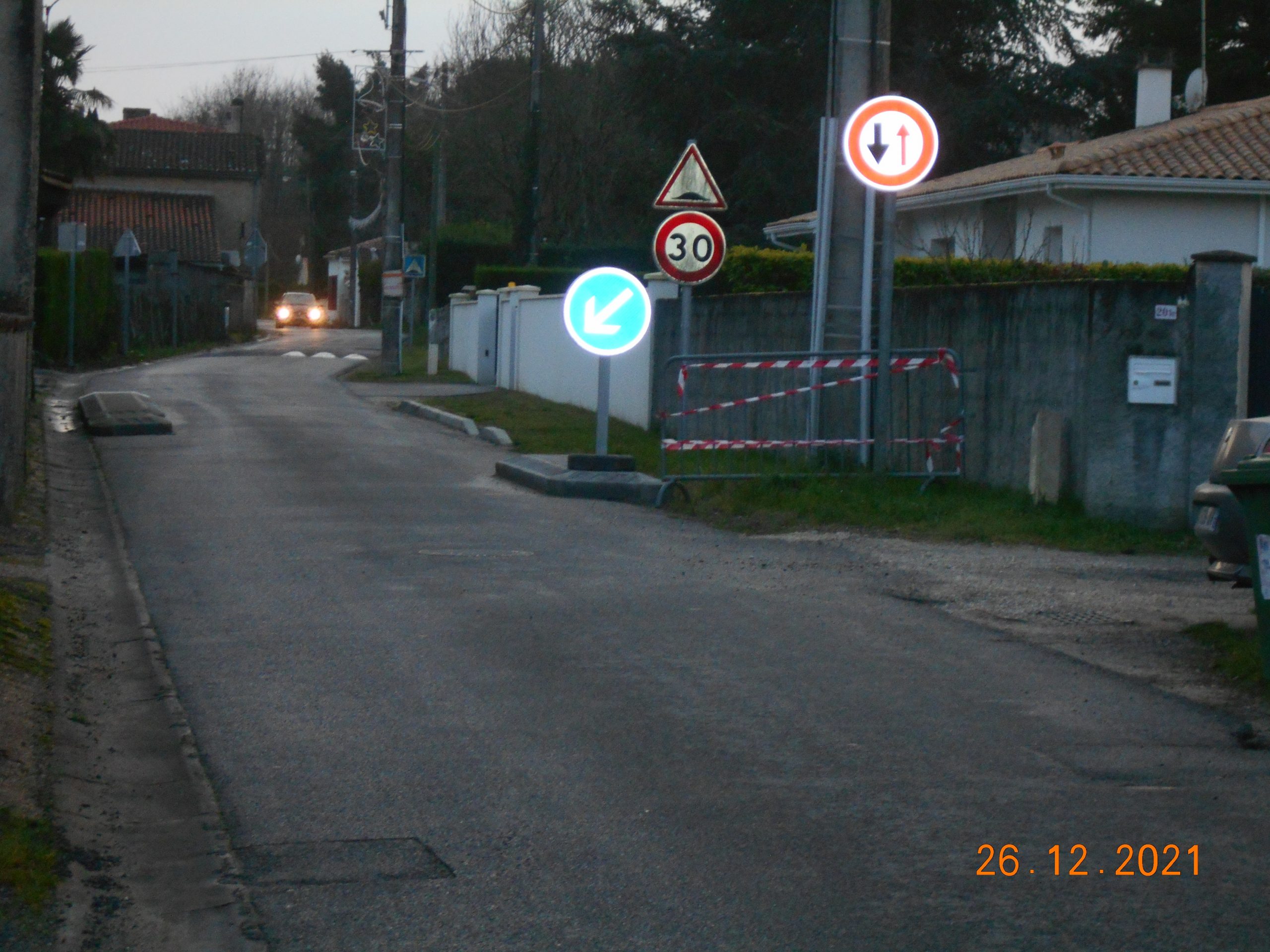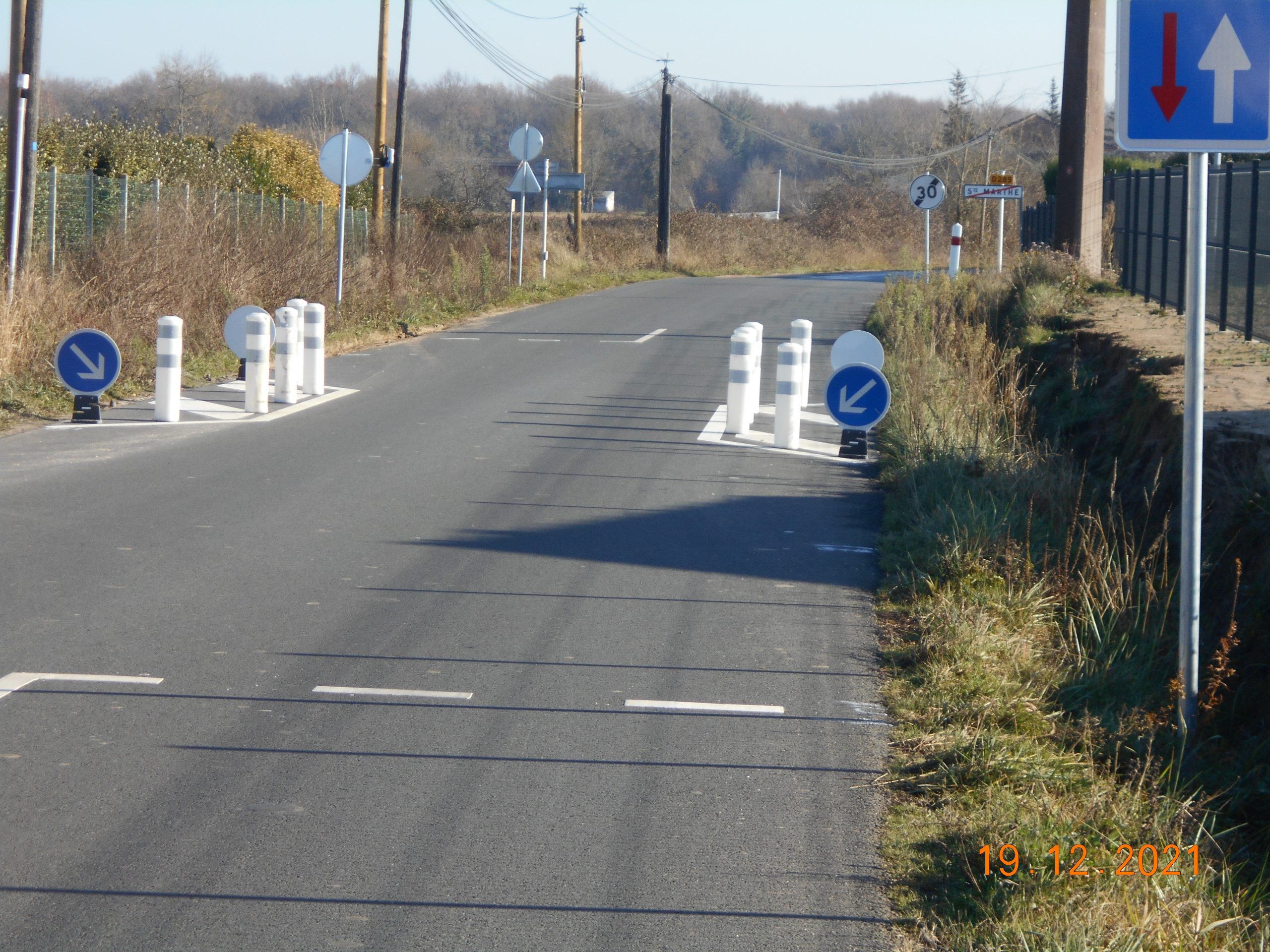 Voici un aménagement provisoire installé dans une commune pour effectuer un test avant d’éventuellement disposer des accotements en béton pour réduire la voie. Cet essai a quand même fière allure. Il faut parfois prendre son temps pour éviter des bêtises…